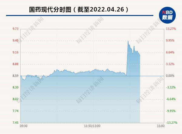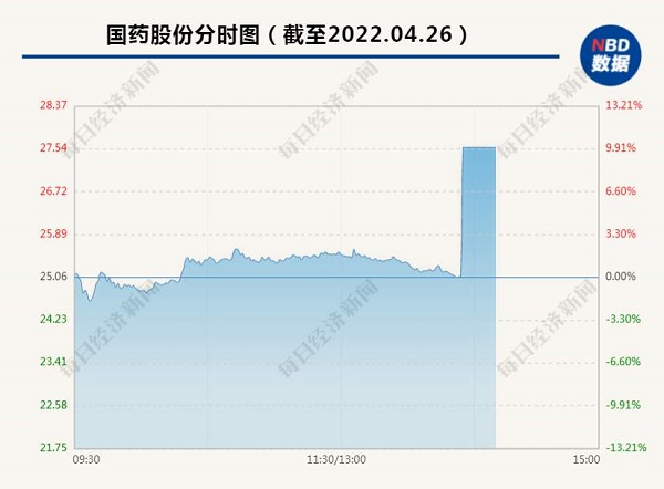 截至發(fā)稿,國藥股份報(bào)27.57元/股,總市值208億元;國藥一致報(bào)28.66元/股,漲6.35%,總市值為124.1億元;國藥現(xiàn)代報(bào)9.16元/股,漲6.64%,總市值為94.07億元。