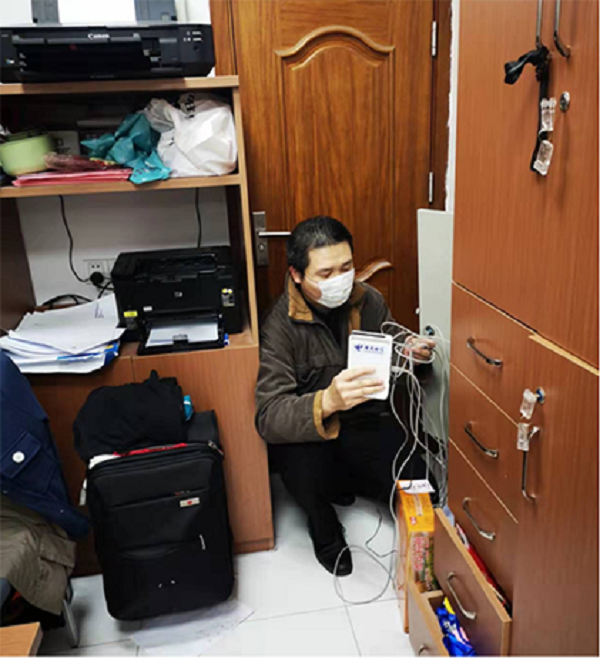 由于幾年前主導建設過該社區(qū)智慧健康養(yǎng)老示范點,吳文巍對現(xiàn)場很熟悉??紤]到居民區(qū)隨時可能會封閉,吳文巍連夜想好方案,準備好設備、網(wǎng)線、工具等物資,第二天一早就趕到社區(qū)。經(jīng)過一個小時的現(xiàn)場工作,信號達到預期效果,將信號覆蓋范圍擴大到2萬平方米。