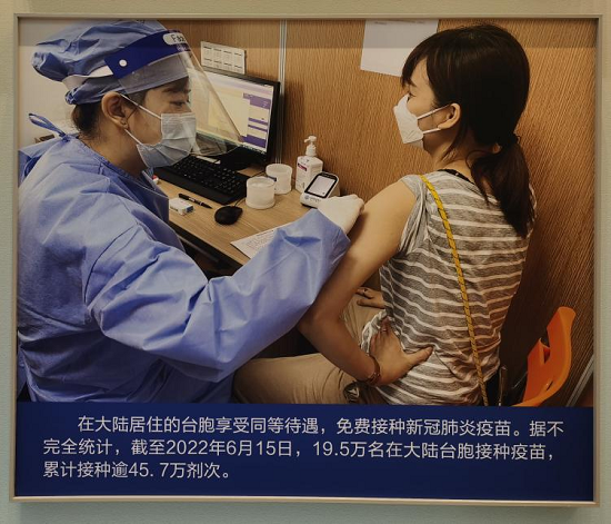 中央綜合展區(qū)第十單元“堅持‘一國兩制’ 推進祖國統(tǒng)一”臺灣篇章,臺灣同胞接種國藥集團中國生物新冠疫苗的高清照片體現(xiàn)了對臺灣同胞健康福祉的真情關(guān)懷。19.5萬人和45.7萬劑次的數(shù)字,也反映了臺灣同胞對國藥疫苗安全性、有效性的高度認可。