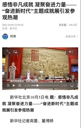 近日,“奮進新時代”主題成就展在北京展覽館開幕。一個個實物模型、一幅幅圖片圖表、一段段精彩視頻,向觀眾們展示了新時代黨和國家事業(yè)取得的歷史性成就、發(fā)生的歷史性變革。