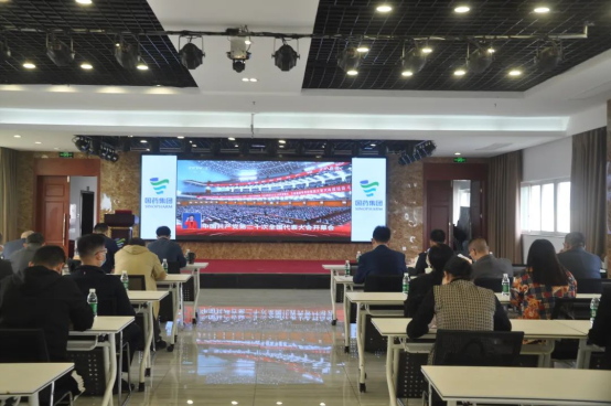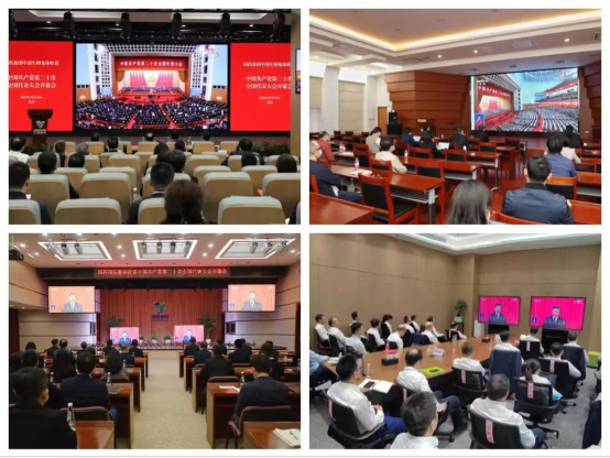 國藥集團總部黨員干部在總部會議室集體收看黨的二十大開幕會現(xiàn)場直播。