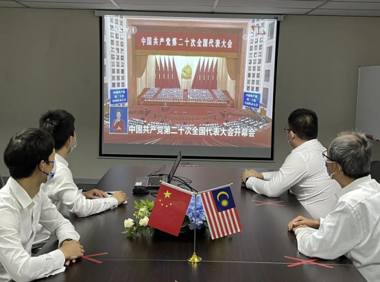 國藥集團駐境外黨員干部在當(dāng)?shù)厥湛袋h的二十大開幕會