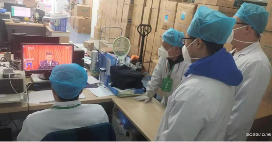國藥器械內(nèi)蒙古呼和浩特抗疫物資庫房值守員工收看黨的二十大開幕會