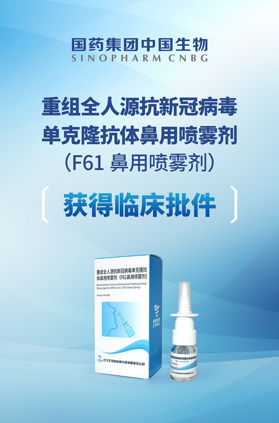 今年7月22日,國藥集團(tuán)中國生物武漢生物制品研究所申報的重組全人源廣譜新冠病毒單克隆抗體注射液(F61)獲得國家藥品監(jiān)督管理局臨床試驗(yàn)批件,并同步推進(jìn)F61鼻用噴霧劑的研究。
